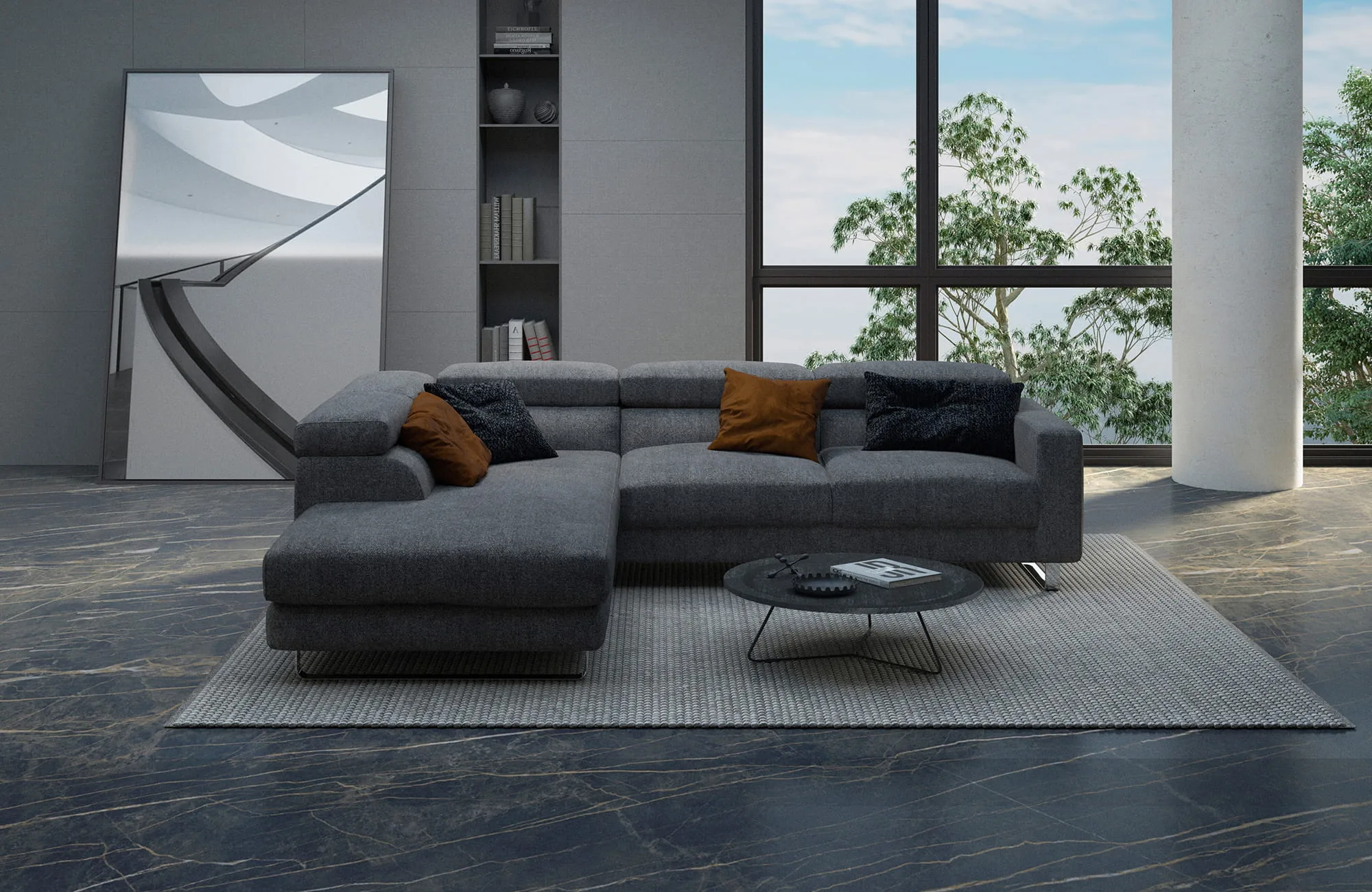 Divano Como componibile dal design classico è perfetto per personalizzare il proprio comfort e living. Il movimento delle sedute estraibili e i poggiatesta reclinabili conferiscono al divano una piacevole comodità.
